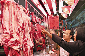 圖:香港今天沒有鮮牛肉應(yīng)市,肉檔只好賣存貨。(圖片來源:文匯報(bào))