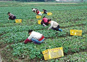 圖:粵北韶關(guān)供港菜基地的工人正在采摘蔬菜。(圖片來源:文匯報)