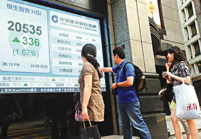 中新網(wǎng)8月25日電 據(jù)香港《文匯報(bào)》報(bào)道,受惠美國樓市數(shù)據(jù)回暖,及美聯(lián)儲(chǔ)主席伯南克樂觀經(jīng)濟(jì)評(píng)論,亞太股市24日全在線揚(yáng),帶動(dòng)全球股市創(chuàng)10個(gè)月高位。在外圍日股、A股造好下,帶動(dòng)港股向好,恒指全日收報(bào)20535.9點(diǎn),升336.9點(diǎn),升幅1.7%,重上10天線,成交627億元。