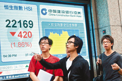 中新網(wǎng)10月28日電 據(jù)香港《文匯報(bào)》報(bào)道,外圍股市跌,拖累港股在臨近期指結(jié)算前急挫,恒指27日隨美股疲軟而低開(kāi)573點(diǎn),其后跌幅一度收窄至不足400點(diǎn),但午后內(nèi)地股市“插水”,大跌近3%,恒指下午再一輪下跌,結(jié)果全日跌420點(diǎn),收?qǐng)?bào)22169.5點(diǎn),跌1.86%,是三周以來(lái)最大跌幅,港股成交額739億元。