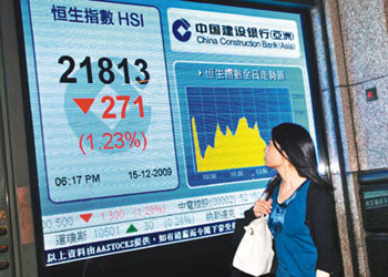 中新網(wǎng)12月16日電 據(jù)香港《文匯報(bào)》報(bào)道,港股經(jīng)周一反彈后15日再回吐,迪拜世界獲救,對港股的刺激只有一天,恒指15日又遇上大量沽盤,最多跌310點(diǎn),全日收報(bào)21813點(diǎn),跌271點(diǎn),成交額687.6億元。恒指再次失守50天線,期指也低水60點(diǎn),技術(shù)走勢進(jìn)一步轉(zhuǎn)差。