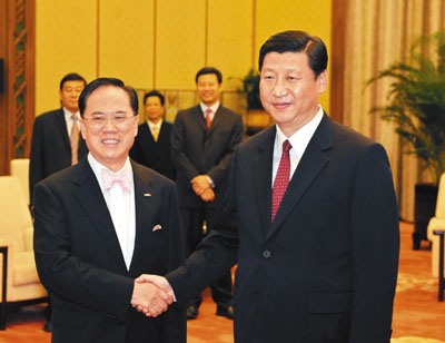 據(jù)了解,曾蔭權(quán)在29日傍晚時分,還第二度與習副主席會面,向他匯報了香港的最新社會、政治、經(jīng)濟、民生情況,其后并共進晚餐。