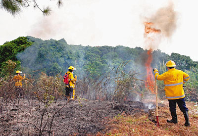 中新網(wǎng)10月27日電 據(jù)香港《文匯報》報道,不少香港市民趁26日重陽節(jié)到各區(qū)墳場掃墓,適逢天文臺發(fā)出黃色火災危險警告,以致山火頻發(fā)。消防處26日接獲32宗山火報告,雖無人受傷,但消防員疲于奔命,帶備火拍及背泵上山撲火。由于山火眾多,港府飛行服務隊直升機也頻頻出動,空投水彈協(xié)助救火。