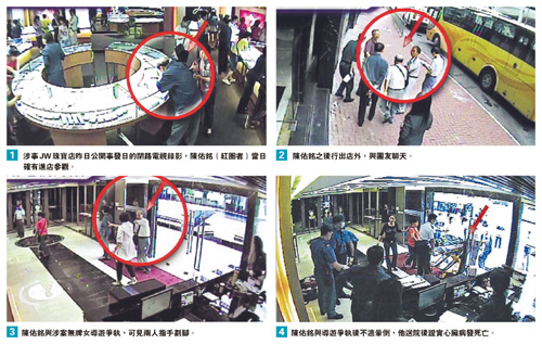 陳佑銘的遺孀、女兒及家屬經(jīng)過極力要求,昨日獲安排到肇事珠寶店翻看事發(fā)時(shí)的閉路電視。據(jù)悉,家屬逗留該店半小時(shí),當(dāng)看到職員及導(dǎo)游對陳佑銘的態(tài)度時(shí),家屬一度情緒激動(dòng),要由他人扶持下離開。