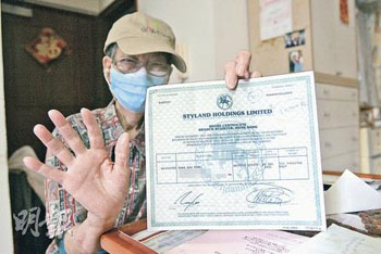 陳婆婆現(xiàn)在說話也有困難,但當(dāng)她講述受頑疾折磨經(jīng)過時(shí),手顫顫指向窗口:“若不是想到這些用棺材本買的股票,我一定會跳下去!”還幸近年有街坊開解,加上參加義工,陳婆婆才得以振作,但她仍念念不忘爭取股票復(fù)牌。