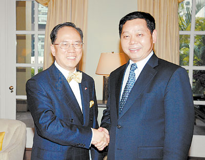 曾蔭權(quán)在會面時表示,香港近兩年對深港兩地經(jīng)濟社會發(fā)展等各方面做了深入研究,進一步堅定了與深圳開展合作的決心,確定了香港發(fā)展目標與深圳緊密聯(lián)系的發(fā)展方向。今后深港要進一步加強溝通和融合,互利共贏,為深港市民多做實事,尤其是落實具體項目,從而推動深港合作再上新臺階。