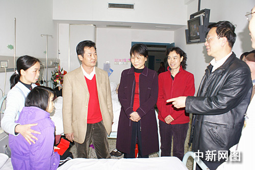 中新網(wǎng)韶關(guān)1月5日電 (馮昶 李凌 劉軍)1月4日下午,廣東韶關(guān)市政協(xié)常委、香港企業(yè)家陳達(dá)豪在韶關(guān)市政協(xié)副主席梁海峰等人的陪同下,來到粵北醫(yī)院探望了主要由他捐助并經(jīng)成功手術(shù)而獲得新生的粵北小女孩鄧?yán)蚍摇?/p>