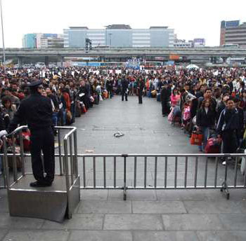 今年春運較去年提前,特別是內(nèi)地施行新休假制度后,“五一”取消長假,赴港游客流提前涌現(xiàn)在春運期間。廣東省公安出入境部門人士預計,2008年春節(jié)前夕及期間經(jīng)深圳赴港個人游及團隊旅客,可望同比去年增長20%倒30%,而北上的香港人同比也將有10%多的增長。因此,今年春運期間,港澳出入境流連同旅游探親流、放假學生流、節(jié)日商務(wù)流及外來務(wù)工流匯合,凸現(xiàn)客流高度、高峰、時段“三大集中”,廣深、廣九線疏運難度加大。