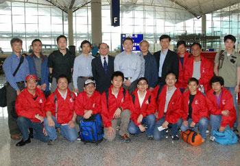 食物環(huán)境衛(wèi)生署署長(zhǎng)卓永興、水務(wù)署署長(zhǎng)馬利德及署理衛(wèi)生署衛(wèi)生防護(hù)中心總監(jiān)梁挺雄醫(yī)生,19日早在隊(duì)伍出發(fā)前吁請(qǐng)他們把香港市民的關(guān)懷和問(wèn)候帶給受地震影響的災(zāi)民。他們又向救援隊(duì)的無(wú)私奉獻(xiàn)表示謝意,并鼓勵(lì)他們?cè)谛袆?dòng)中竭盡所能。