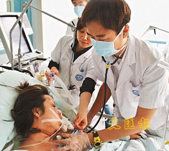 周家偉則在深切治療病房?jī)?nèi)工作,他為插氧氣喉的嚴(yán)重病人拍痰、進(jìn)行手腳活動(dòng)及胸肺物理治療,病房的儀器不斷散發(fā)出熱氣,他整日汗流浹背。他說(shuō),深切治療部?jī)?nèi)的50張病床,全部是情況很差的病人,從未見(jiàn)過(guò)這么多傷者失去手腳,震撼場(chǎng)面至今仍印在腦海。