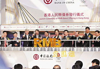 中新網(wǎng)7月14日電 據(jù)香港文匯報(bào)報(bào)道,中資銀行去年在香港發(fā)行100億元人民幣債券(簡(jiǎn)稱人債),今年新一批人債即將面世,有指內(nèi)地五間商業(yè)銀行擬在港發(fā)行一共不少于150億元人債。