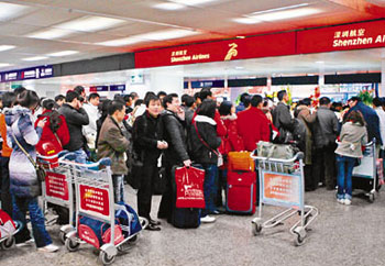 來往香港和內(nèi)地的客流量很大,統(tǒng)計(jì)顯示,深航去年1000多萬旅客中,有近400萬是香港旅客或到香港旅游的人,占了整個(gè)運(yùn)輸量近40%。而深圳機(jī)場提供的數(shù)據(jù)顯示,往香港的內(nèi)地游客中,有1/4是通過深圳機(jī)場中轉(zhuǎn)至香港。同時(shí),經(jīng)過香港中轉(zhuǎn)往內(nèi)地的國際旅客數(shù)量也非常龐大。