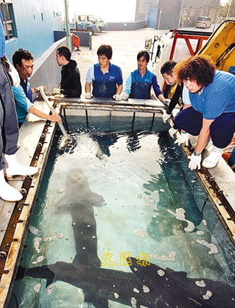 廈門基地負責人李奕慰說,一般與兩條病鱘一樣年齡10歲、身長約2米的中華鱘,日進食量應該達到800至1000克,但6號鱘魚10多日來,日均進食量都在100克左右,恢復較慢的8號魚是從一周前才開始進行喂食,食量更僅有約80克,僅達正常食量的10%。