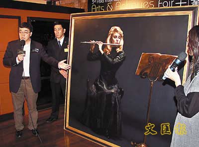中新網(wǎng)2月28日電 已故中國當(dāng)代杰出油畫家陳逸飛遺作,時(shí)值約2,100萬港元的《長笛手》,將于5月23日至26日在港首次公開展出。作品中背景和主體都是大片黑色,但陳逸飛以光影,成功營造出層次和立體感,盡顯功力。(彭子文)