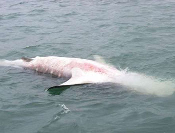 豈料事隔一日,至8日上午9時許,有釣魚發(fā)燒友租艇由香港仔往南丫島垂釣,開船15分鐘后即在鴨利洲以東海面發(fā)現(xiàn)一條大魚浮尸,而當(dāng)時已有一艘水警輪在場,他相信該條大魚尸體就是日前放生的鯨鯊,事后更將拍攝的相片上載到互聯(lián)網(wǎng),引起網(wǎng)友熱烈討論。