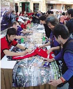 車手為車迷簽名。(圖片來源:澳門日報)
