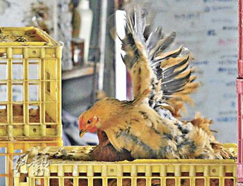 活雞批發(fā)商預計,30日應市活雞中,來自內地的多約3斤半重,但香港農場雞不乏4、5斤重大肥雞。(圖片來源:明報)