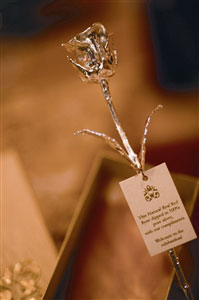 圖:蘸上純銀的鮮花玫瑰回贈(zèng)嘉賓。(圖片來(lái)源:澳門日?qǐng)?bào))