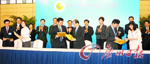 粵港雙方昨日簽署11項(xiàng)合作協(xié)議。(圖片來源:廣州日?qǐng)?bào))