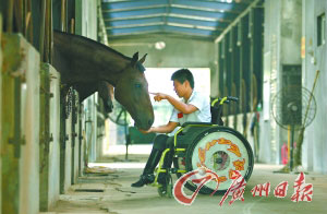 “在平常人看來這可能是小兒科,可我就好像是健全人跪在馬背上那樣,要想不摔下來真的是太難了。經(jīng)常是幾圈走下來,我和教練的渾身都濕透了,教練比我更緊張,生怕有一丁點(diǎn)兒閃失!弊屌碓_B無比感動(dòng)的是,到如今,兩年半的訓(xùn)練生活,自己從來還沒有過墜馬受傷。這其中,凝聚著教練和大哥哥大姐姐隊(duì)員們對(duì)他無限的愛。