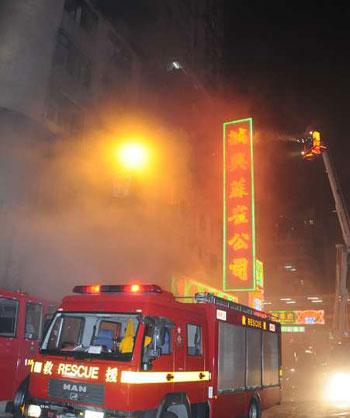 火警在8日晚11時(shí)零7分發(fā)生,消防員接報(bào)迅即到場(chǎng),但附近街道狹窄,并停滿等客小巴,令消防車無法實(shí)時(shí)駛?cè),要警員趕往清場(chǎng)后,才能停車卸下工具派員進(jìn)入大廈和架起云梯灌救。