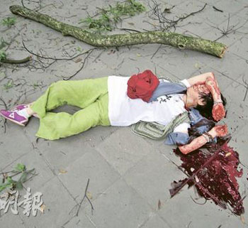 由于言語不通,小文幾經(jīng)艱辛,終在他人協(xié)助下將重傷的胞姐送往都江堰某醫(yī)院,不料市內(nèi)有兩間醫(yī)院也損毀倒塌,且斷水?dāng)嚯姡缍褲M了尸體及傷者。數(shù)小時后,小文與已陷入昏迷的姐姐擠上載滿傷者的救護(hù)車,前往成都四川省人民醫(yī)院求醫(yī)。