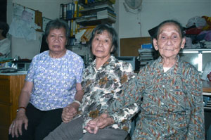 圖:三位老婆婆緊握彼此的手,表示會繼續(xù)為受災(zāi)同胞重建家園出一分力。(圖片來源:澳門日報)