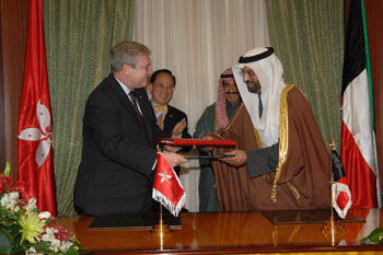 曾蔭權(quán)27日率領(lǐng)商界高層訪問(wèn)團(tuán)抵達(dá)科威特,展開(kāi)中東的訪問(wèn)行程。這是曾蔭權(quán)自2005年出任行政長(zhǎng)官后,首次到訪中東。他表示,中東石油儲(chǔ)備帶來(lái)的收益達(dá)每年10,000億美元,而隨著油價(jià)上升這數(shù)愈字愈大,這些資金需要渠道以作投資,有效地消化和尋找投資機(jī)會(huì)。