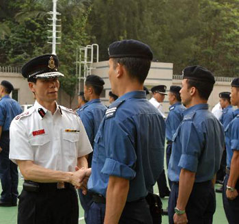 消防處處長盧振雄在東涌消防局為搜救隊送行。期間,行政長官曾蔭權(quán)亦致電為隊員打氣。