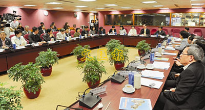 曾德成與全港18區(qū)區(qū)議會(huì)正副主席會(huì)面,聽(tīng)取區(qū)議員對(duì)地區(qū)小型工程的意見(jiàn)。(圖片來(lái)源:文匯報(bào))