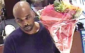 據(jù)美國媒體20日報道,警方稱,這名光頭男子15日上午手持一束艷麗的鮮花在曼哈頓區(qū)的一所銀行門口徘徊,看上去就像焦急等待女朋友的求愛者。之后他走進(jìn)銀行直奔營業(yè)窗口。監(jiān)控錄像記錄下他左手持花,右手從花束中掏出一張卡片遞給出納員,據(jù)說上面寫著:“交出你所有的100美元和50美元鈔票。別妄想當(dāng)英雄!边@名出納交出了440美元現(xiàn)金。“鮮花劫匪”得手后就把鮮花扔在柜臺上,迅速逃離。