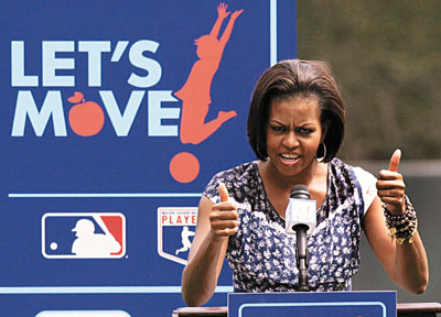 米歇爾近期頻頻在公眾前現(xiàn)身,推動(dòng)超重兒童多做運(yùn)動(dòng),她上周現(xiàn)身巴爾的摩籃球場(chǎng),獲得現(xiàn)場(chǎng)大批學(xué)童鼓掌及歡呼支持。難怪有資深民主黨軍師指出,“奧巴馬令人動(dòng)怒;米歇爾令人歡容。”