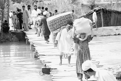 開伯爾—普什圖省的斯瓦特河谷地帶是受災(zāi)最為嚴(yán)重的地區(qū)之一。當(dāng)?shù)氐姆课、醫(yī)院和通信設(shè)施已經(jīng)遭到嚴(yán)重毀壞。由于此前塔利班等武裝組織一直盤踞在這里,自去年巴軍方發(fā)動(dòng)大規(guī)模清剿行動(dòng)以后,大批的民眾流離失所,目前回歸的難民剛得到安頓,便又受到洪災(zāi)的侵害,這將進(jìn)一步延緩當(dāng)?shù)刂亟ǖ牟椒ァ?/p>