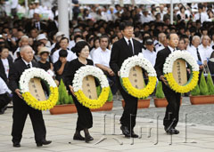 中新網(wǎng)8月9日電 據(jù)日本共同社網(wǎng)站報道,8月9日,日本長崎市迎來了原子彈爆炸65周年紀(jì)念日,原子彈爆炸遇難者慰靈和平祈愿儀式在長崎市松山町和平公園內(nèi)舉行。英、法兩個核持有國首次出席該紀(jì)念活動。除日本首相菅直人到場之外,包括俄羅斯、巴基斯坦及以色列在內(nèi)的32個國家均派代表列席,人數(shù)之多創(chuàng)歷史紀(jì)錄。當(dāng)?shù)貢r間當(dāng)天中午11點02分,全場在65年前原子彈投下的時刻集體默哀,為死難者祈福。