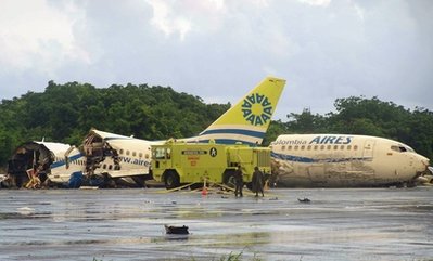 客機(jī)上共搭載125名乘客和6名機(jī)組人員?蜋C(jī)是當(dāng)?shù)貢r(shí)間15日晚從哥倫比亞首都波哥大起飛的。當(dāng)?shù)睾娇詹块T官員稱,客機(jī)駕駛員盡力避免飛機(jī)與機(jī)場(chǎng)跑道直接相撞。