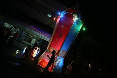 這座高10米寬3.5米的燈狀物體由木頭和布料制成,制造者稱他建造這座巨型燈花費了400美元,“我將向吉尼斯世界紀錄提出申請,以便向世界傳達打破加沙封鎖的信息。”