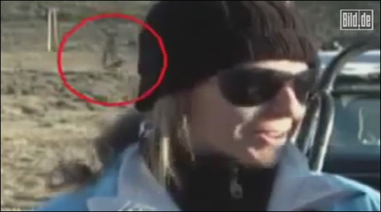 這段視頻的拍攝地點(diǎn)位于阿根廷的圣克魯斯省,一個(gè)以經(jīng)常出現(xiàn)UFO和外星人而出名的地區(qū)。鏡頭前,一個(gè)戴著帽子和墨鏡的美女正在對(duì)著麥克風(fēng)接受采訪。突然,鏡頭的背景中出現(xiàn)一個(gè)古怪的身影,并緩緩地從鏡頭中走過。