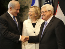 當(dāng)天,以色列總理內(nèi)塔尼亞胡和巴勒斯坦民族權(quán)力機(jī)構(gòu)主席阿巴斯在埃及度假勝地沙姆沙伊赫舉行直接談判,美國(guó)國(guó)務(wù)卿希拉里和米切爾出席。