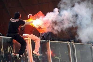 當(dāng)塞爾維亞隊(duì)球員離開(kāi)賓館準(zhǔn)備參賽時(shí),塞爾維亞球迷襲擊了該隊(duì)首席守門(mén)員,守門(mén)員被扔到球隊(duì)大巴車(chē)的一枚照明彈擊中。