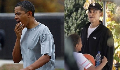 中新網(wǎng)11月29日電 據(jù)外電報(bào)道,當(dāng)?shù)貢r(shí)間28日,不久前遭肘擊、嘴唇因此縫了12針的美國(guó)總統(tǒng)奧巴馬又重回籃球場(chǎng)打球,不過(guò),這次他和兩個(gè)個(gè)子小了許多的對(duì)手——他的兩個(gè)女兒上場(chǎng)。相信這次,他不會(huì)再“破相”了。