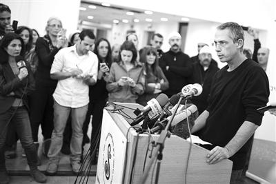 1月11日,在以色列特拉維夫附近的謝巴赫醫(yī)療中心,以色列前總理沙龍的兒子吉拉德·沙龍?jiān)谛侣劙l(fā)布會(huì)上講話。新華社發(fā)