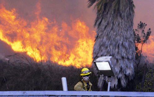 加州森林局發(fā)言人羅克珊·普羅瓦茲尼克透露,消防員正夜以繼日的進行滅火工作,1人在圣地亞哥附近參與救火的時候遇難,傷者中包括4名消防隊員。在圣地亞哥北部地區(qū),大火燒毀了將近22.3平方公里土地,并正在威脅威奇河附近的民宅。