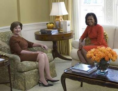 勞拉帶領(lǐng)米歇爾參觀的,包括她有份協(xié)助策劃裝修的林肯睡房,以及她的孿女詹娜和芭芭拉的睡房。雖然白宮面積很大,但畢竟已經(jīng)住了8年,勞拉的足跡已踏遍了每一寸地方。