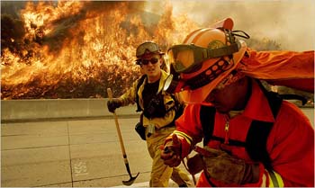 據英國廣播公司報道,目前,在受災嚴重的圣塔巴巴拉附近,已有幾所價值數百萬美元的豪宅化為灰燼。往東80英里的洛杉磯郊區(qū)西爾瑪,大火吞噬了約500所移動民宅。 再往東,另外一處勢頭強勁的大火在河畔和奧蘭治縣熊熊燃燒,20萬居民被迫緊急疏散。當地官員表示,重鎮(zhèn)洛杉磯隨時面臨斷電危險。