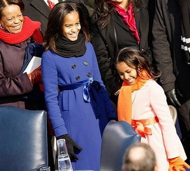 中新網(wǎng)1月22日電 美國總統(tǒng)奧巴馬的長女馬莉婭(10歲)和次女薩莎(7歲)20日在奧巴馬就職儀式上的著裝獲得一致好評,被稱“很可愛”,人氣不亞于總統(tǒng)夫人米歇爾的禮服。據(jù)日本共同社報道,就職儀式后有關(guān)服裝廠商接到蜂擁而至的問詢,以致于網(wǎng)頁爆滿陷入癱瘓。