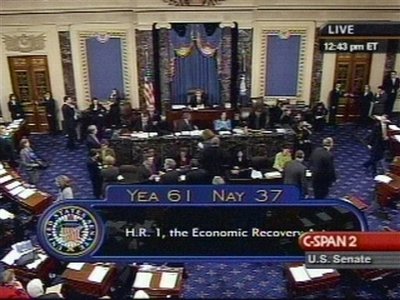據(jù)悉,美參議院以61票對(duì)37票的投票結(jié)果批準(zhǔn)了該經(jīng)濟(jì)刺激計(jì)劃。美國(guó)總統(tǒng)奧巴馬則表示,這是個(gè)“好消息”。