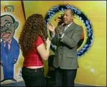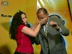 這位剽悍的紅衣女子,是與委內(nèi)瑞拉總統(tǒng)查韋斯同黨的國會(huì)議員薇瑞拉(Iris Varela)。一旁身穿灰色西裝的則是政論節(jié)目記者阿佐卡爾(Gustavo Azocar)。20日的現(xiàn)場(chǎng)節(jié)目中的激烈打斗讓全委內(nèi)瑞拉的觀眾目瞪口呆。