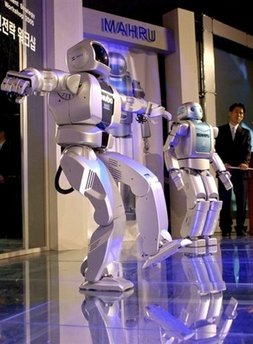 韓國研究的人型機(jī)器人Mahru(右)