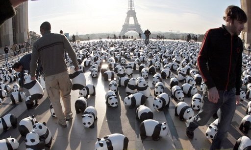 中新網(wǎng)10月20日電 綜合報道,10月18日,在法國首都巴黎,1600只紙制熊貓被放置在廣場上供人們參觀。這一活動由世界自然基金會(WWF)發(fā)起,旨在呼吁人們保護為數(shù)不多的大熊貓,同時提醒人們保護賴以生存的自然環(huán)境。