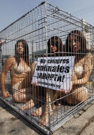 中新網(wǎng)1月4日電 綜合報(bào)道,1月3日,墨西哥城3名動(dòng)物權(quán)益組織成員坐在一個(gè)籠子中,對(duì)買賣寵物的行為表示抗議。他們希望以這種形式喚起人們的注意,呼吁人們不要販賣寵物。
